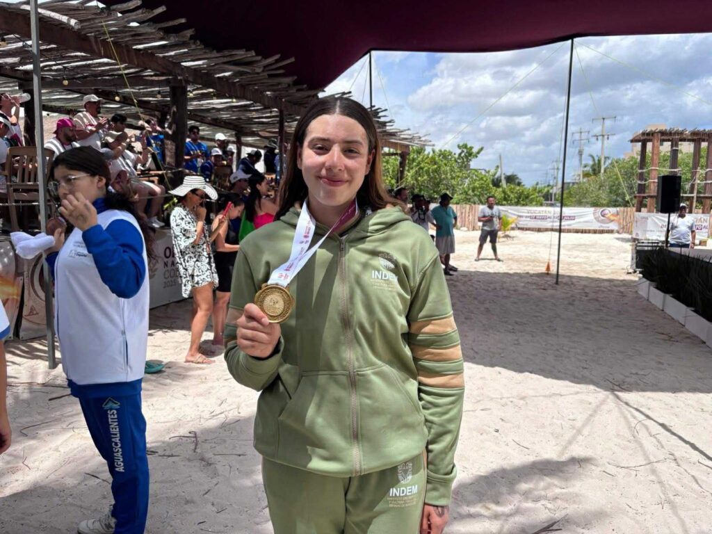 Al respecto, el titular del Indem, Juan Felipe Domínguez Robles, comentó que la nadadora es una de las mejores exponentes en mar abierto, además, Regina conquistó la medalla de oro en los 10 kilómetros, dentro de la categoría 18–19 años al registrar un tiempo de 2:23:41, superando a competidoras de Jalisco y Aguascalientes, lo que refleja su preparación y constancia en una de las pruebas más exigentes de la natación. También formó parte del relevo mixto 4×1500, que obtuvo medalla de plata en la Olimpiada Nacional Conade 2025, junto a Paulina Alanís Hernández, Raúl Moreno Gutiérrez y Gabriel Landa Miramón.