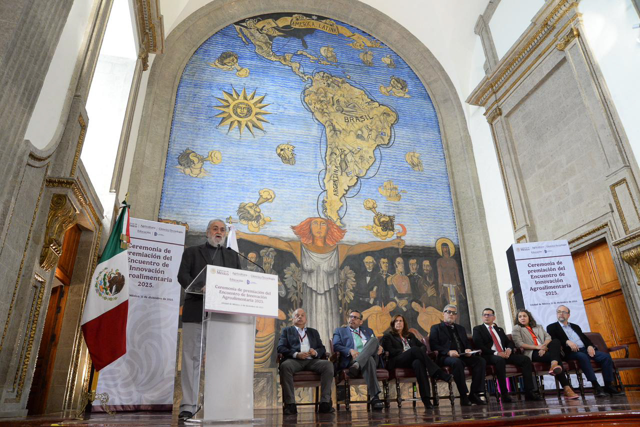 Las Secretarías de Agricultura y Desarrollo Rural (Agricultura), de Educación Pública (SEP) y de Ciencia, Humanidades, Tecnología e Innovación (Secihti), en coordinación con el Tecnológico Nacional de México (TecNM) y aliados estratégicos como CIMMYT, IICA y Santander Universidades, reconocieron a las y los ganadores del Encuentro de Innovación Agroalimentaria 2025, durante una ceremonia realizada en el Centro Histórico de la Ciudad de México.