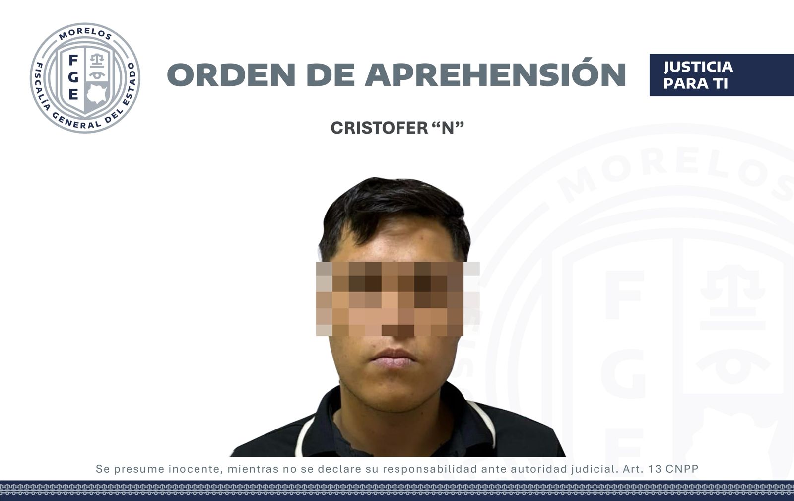 La AIC cumplimentó el mandato en el municipio de Temixco, así, tras el protocolo correspondiente, Cristofer “N” ingresó al Centro Estatal de Reinserción Social (Cereso) Morelos, de Xochitepec, a la espera de su audiencia inicial.