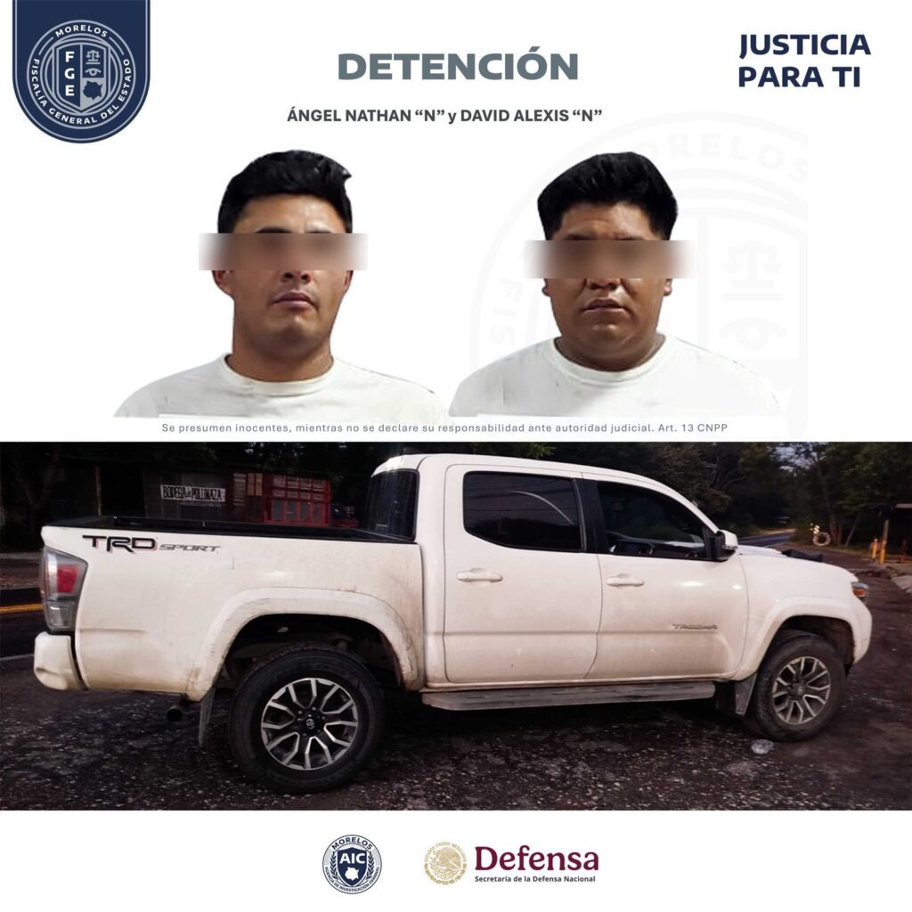 Gracias a una denuncia anónima, elementos de la Agencia de Investigación Criminal (AIC) de la Fiscalía Regional Sur Poniente detuvieron en flagrancia a Ángel Nathan “N” y David Alexis “N” en posesión de dinero y varias presuntas dosis de droga, a bordo de una camioneta en el municipio de Amacuzac.