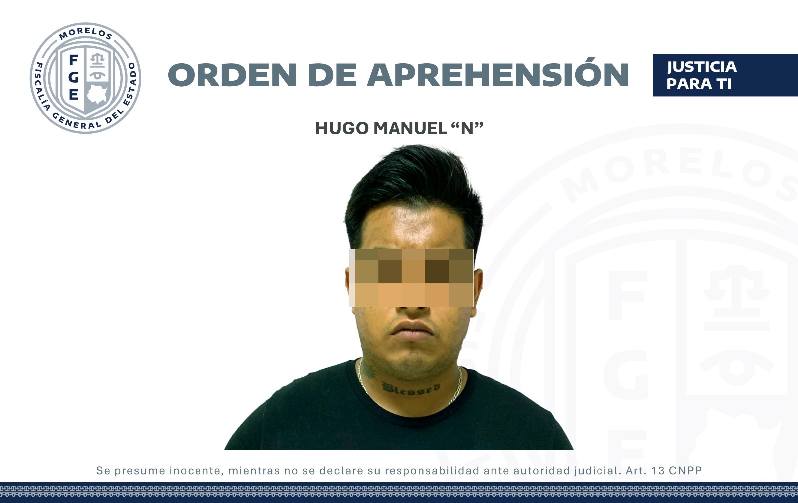 Esta representación social inició la investigación en torno al delito e identificó a Hugo Manuel “N” como posible partícipe en los hechos, así, un agente del Ministerio Público (MP) solicitó y obtuvo una orden de aprehensión en su contra.