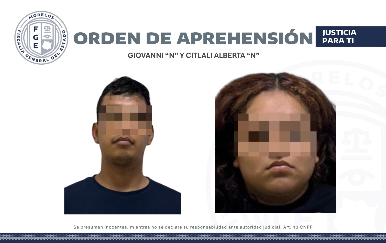Elementos de la Agencia de Investigación Criminal (AIC) de la Fiscalía Regional Sur Poniente ejecutaron una orden de aprehensión en contra de Giovanni “N” y de Citlali Alberta “N”, por la probable comisión del delito de robo calificado, en hechos suscitados en el municipio de Jojutla.