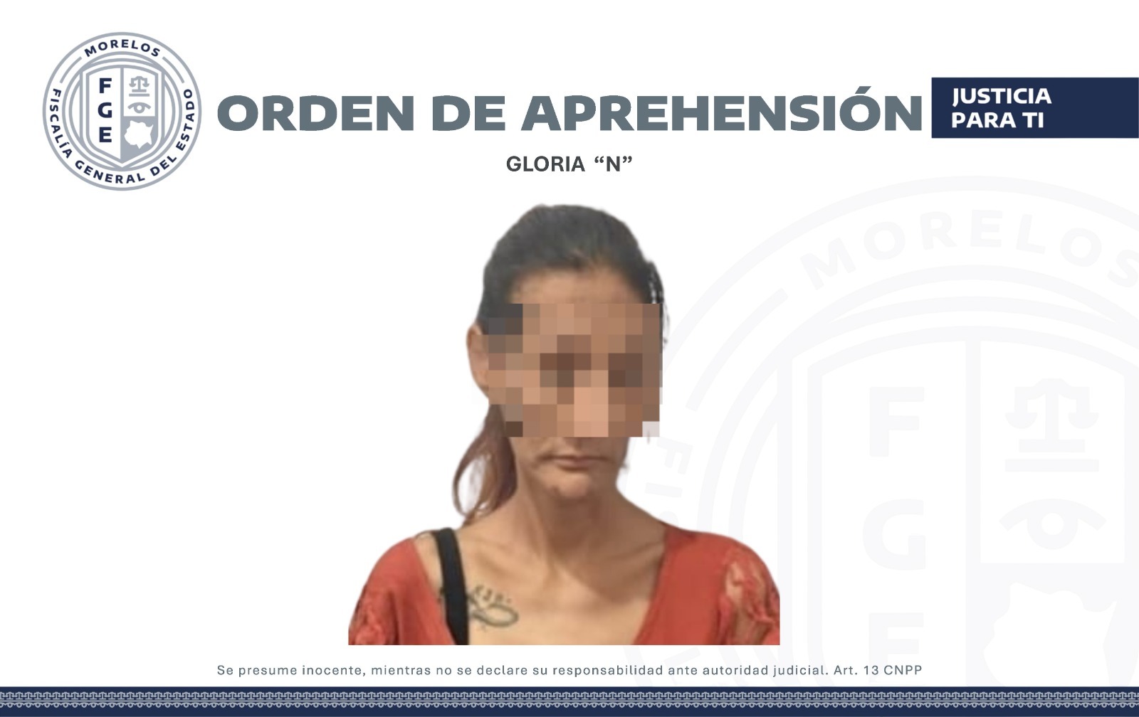Personal de la Agencia de Investigación Criminal (AIC) de la Fiscalía Regional Sur Poniente cumplimentó una orden de aprehensión en contra de Gloria “N”, declarada sustraída de la acción de la justicia por incumplir con las medidas cautelares que le impuso un juez de control en el proceso que enfrenta por el delito de narcomenudeo.