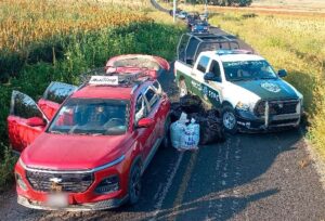 Lo anterior, dio como resultado el aseguramiento de una camioneta del Estado de México con reporte de robo, la cual traía en su interior un cargamento de hierba verde, con características similares a la marihuana con un peso aproximado a los 200 kilogramos.
