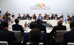 La Presidenta de México, Claudia Sheinbaum Pardo, participó en la IV Cumbre en Defensa de la Democracia realizada en Barcelona, España, donde propuso destinar el 10% del gasto mundial en armamento a un programa global de reforestación y emitir una declaración en contra de la intervención militar en Cuba.