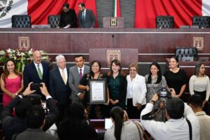 En el acto se entregó la Medalla de Honor del Congreso del Estado a personalidades destacadas en ciencia, cultura, tecnología y deporte, además de un reconocimiento póstumo al profesor Manuel León Díaz, autor de la marcha Morelense.