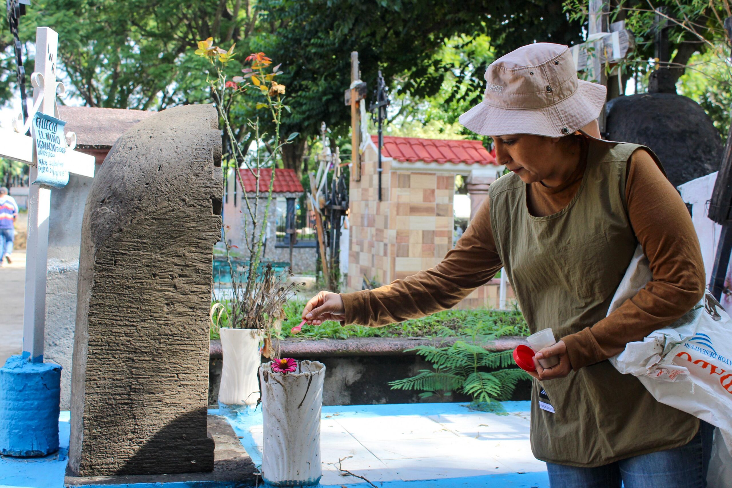 De manera simultánea personal operativo del Ayuntamiento de Jiutepec realiza trabajos de limpieza, mantenimiento y rehabilitación de los espacios de descanso en el municipio en la víspera del día de muertos.