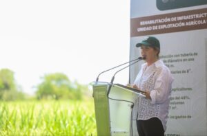 Asimismo, inauguró la primera etapa de la rehabilitación de infraestructura hidroagrícola en el ejido de Santa Rosa 30, que mejora el abasto y distribución de agua para el sector productivo.