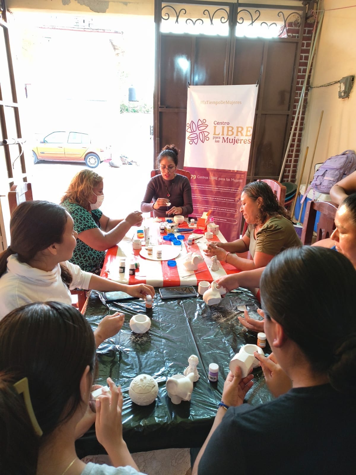 El taller tuvo como objetivo que las mujeres exploraran y fortalecieran su creatividad mediante la elaboración y decoración de figuras de yeso, como una alternativa práctica para generar un ingreso extra, al tiempo que se promovió un espacio seguro de convivencia, apoyo mutuo y diálogo colectivo.