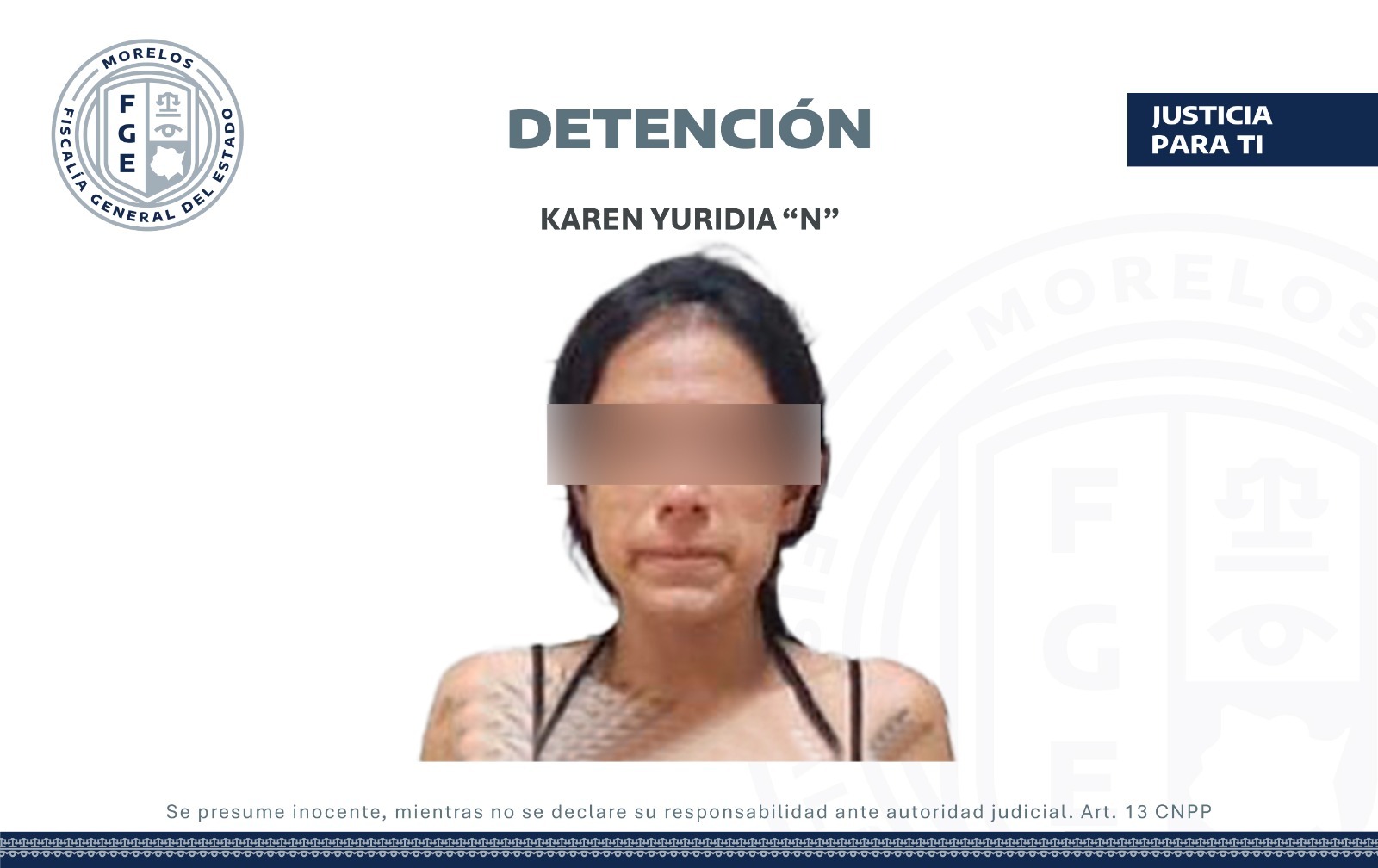 Se trata de Karen Yuridia “N”, de 33 años de edad, quien quedó a disposición del agente del Ministerio Público (MP) especializado por el delito antes señalado.