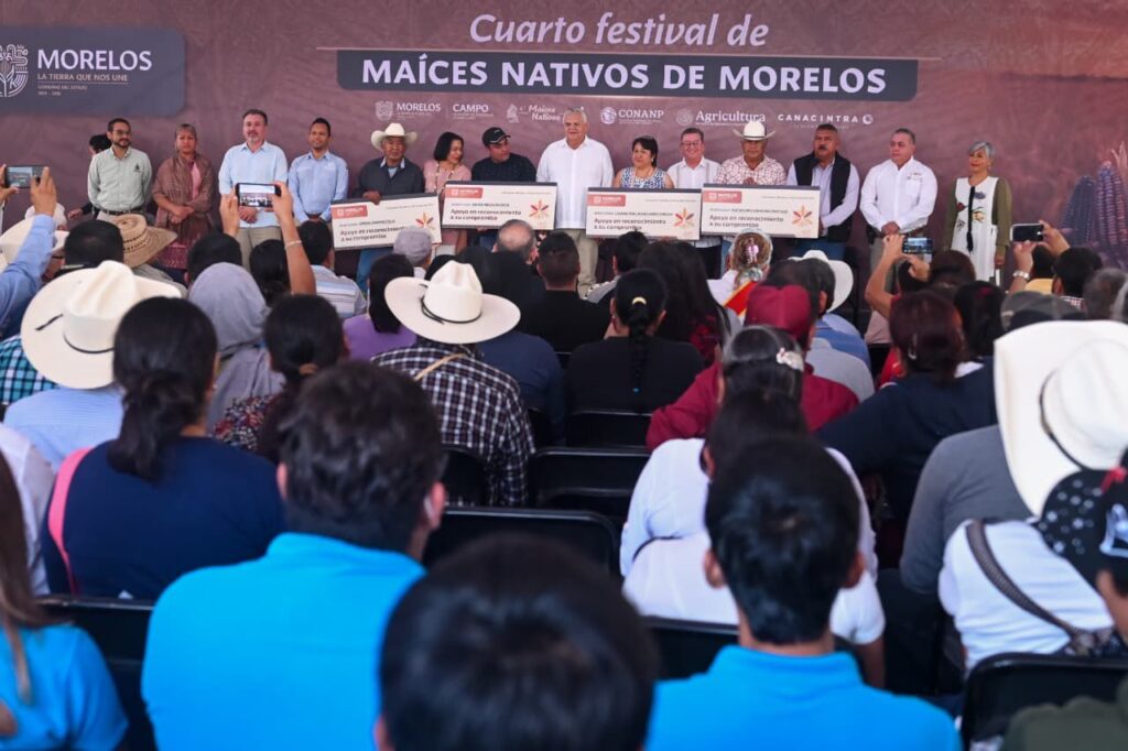 Asimismo, en este Cuarto Festival de Maíces Nativos de Morelos, y a nombre del Gobierno estatal, Margarita Galeana y Javier García entregaron de manera simbólica cuatro cheques a productoras y productores de estos granos básicos, como parte del Programa de Maíces Nativos, con lo que se da cumplimiento al compromiso establecido por la gobernadora Margarita González Saravia hace un año con este sector.