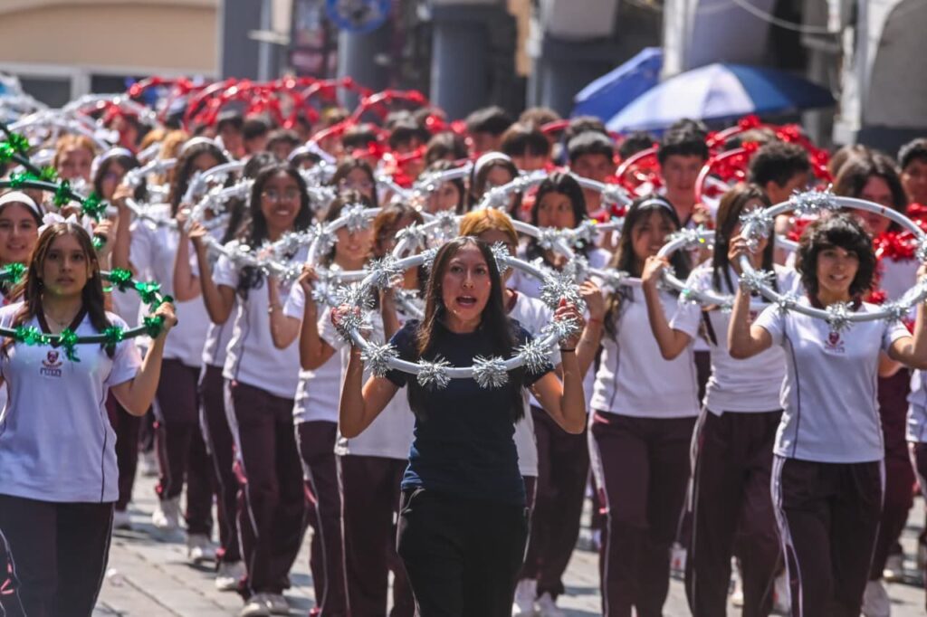La titular del Poder Ejecutivo estatal, Margarita González Saravia, presenció el paso de cuatro mil 030 estudiantes, docentes y contingentes civiles y militares
