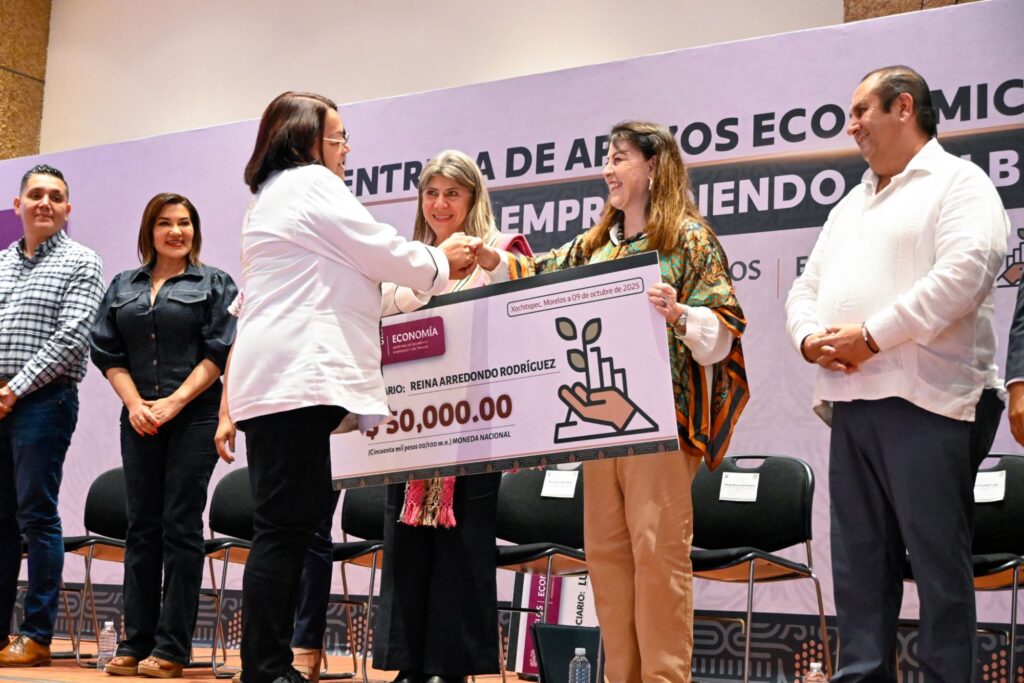 Durante el acto, la gobernadora González Saravia entregó de manera simbólica tres cheques representativos, de un total de 570, a Reyna Arredondo Rodríguez, de Jiutepec (transformación); Luis Pablo García Sosa, de Tlaltizapán (agroindustria); y Juana Martínez Teodoro, de Coatetelco (servicios).