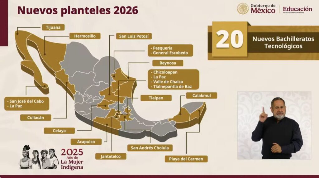 Durante la “Mañanera del Pueblo”, encabezada por la presidenta Claudia Sheinbaum Pardo, el titular de la SEP, Mario Delgado Carrillo, informó que en 2026 se construirán en la entidad siete de los 130 nuevos ciberbachilleratos que habrá en el país; detalló que este modelo atenderá a comunidades con secundarias cuya matrícula sea igual o mayor a 50 estudiantes y que no cuenten con un bachillerato cercano, es decir, a menos de 45 minutos de distancia.