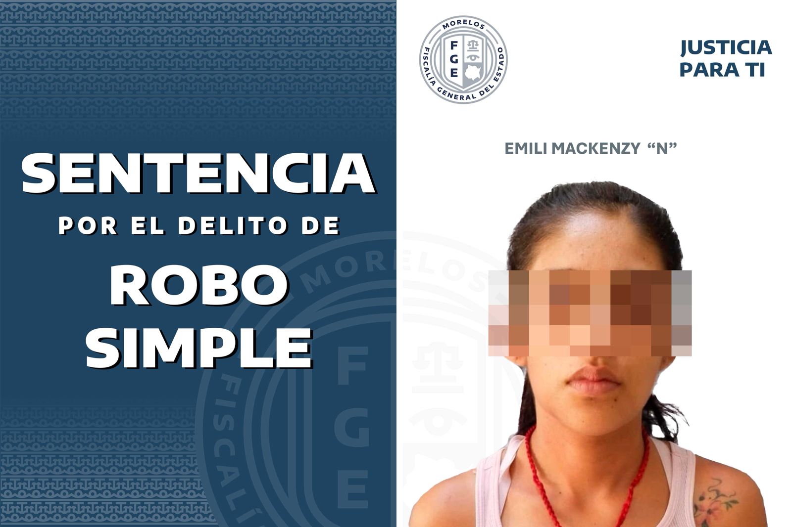 Una sentencia de tres años, 10 meses y 13 días de prisión en contra de Emili Mackenzy “N” obtuvo la Fiscalía General del Estado (FGE) de Morelos, mediante un procedimiento abreviado, luego de que reconociera su culpabilidad en los delitos de robo simple y contra la salud.