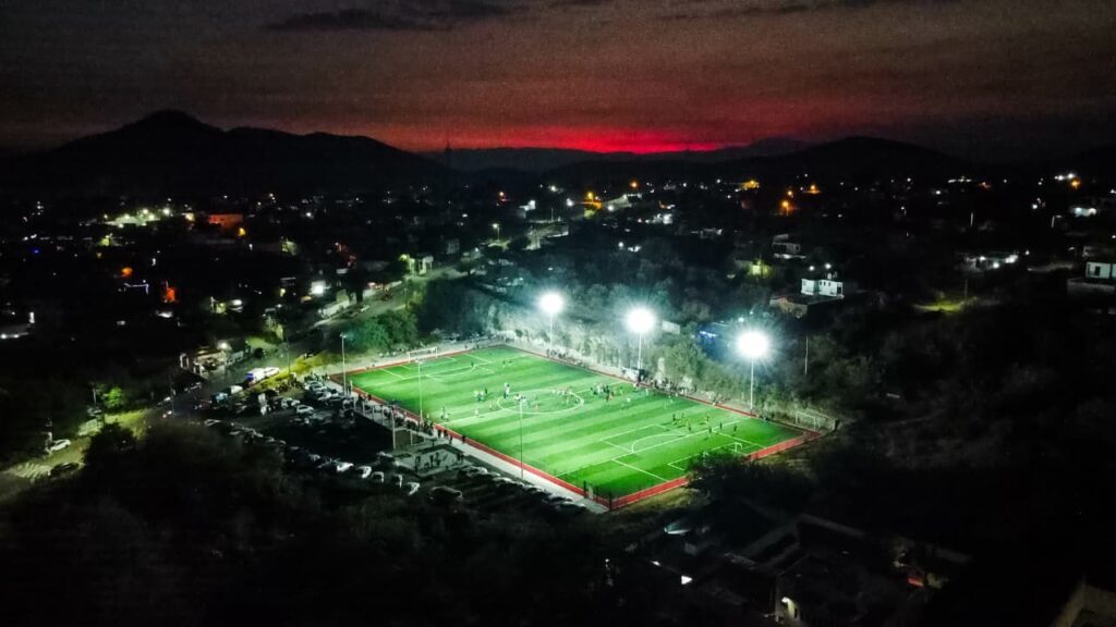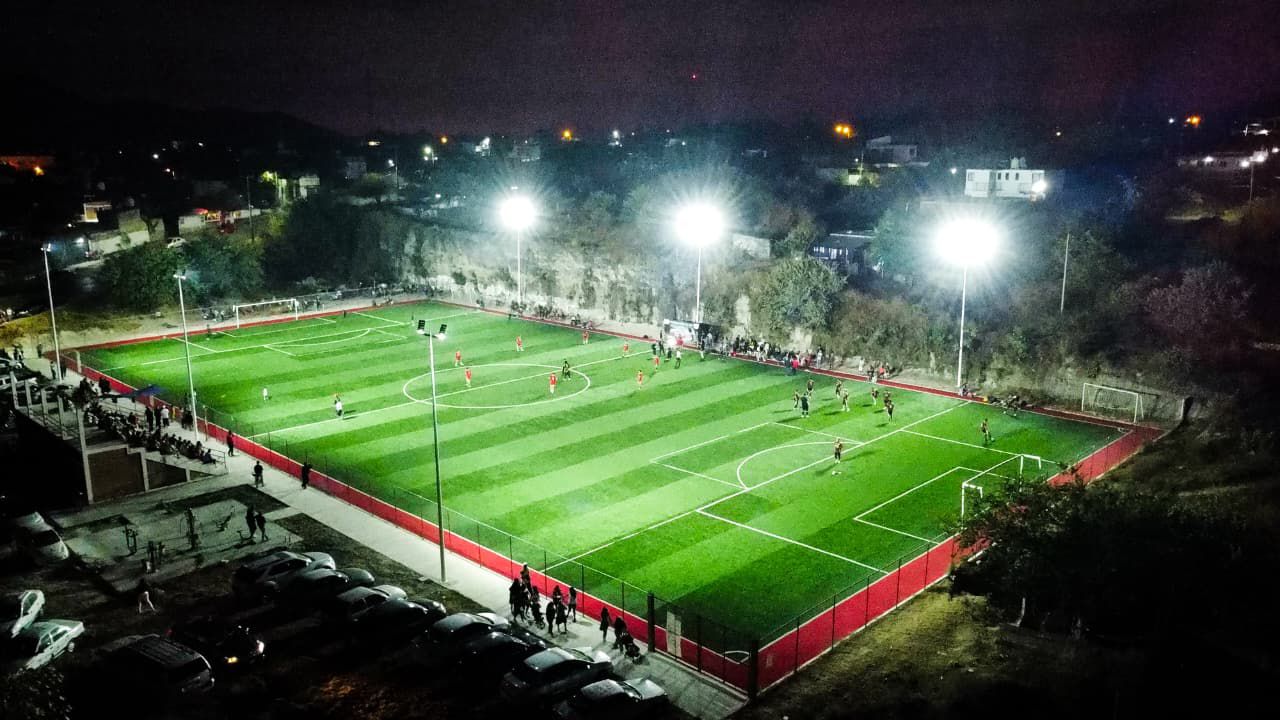 Convencidos de que el impulso al deporte social y la actividad física son herramientas clave para el cuidado de la salud y la prevención de conductas antisociales, esta noche quedó iluminada la cancha de futbol La Mina, ubicada en la colonia Obrero Popular – Unidad Morelos, permitiendo su uso también en horario nocturno.
