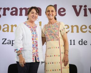 Claudia Sheinbaum destacó que más de cinco millones de familias en el país han recibido este beneficio y reconoció el trabajo de la gobernadora, a quien señaló por priorizar el bienestar de la población y ejercer los recursos con enfoque social.
