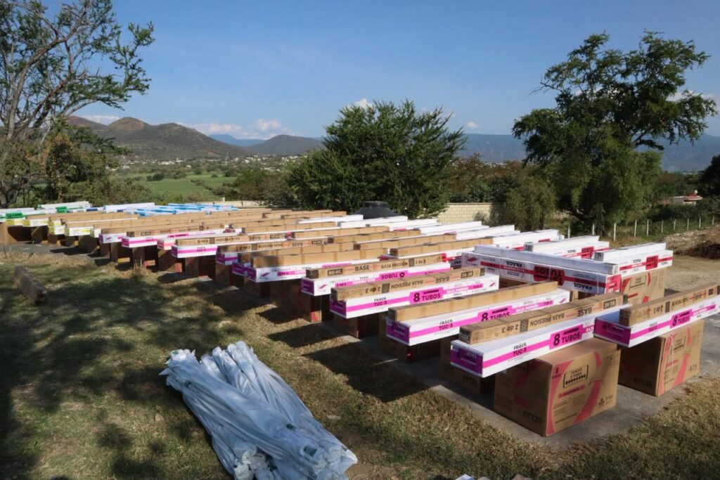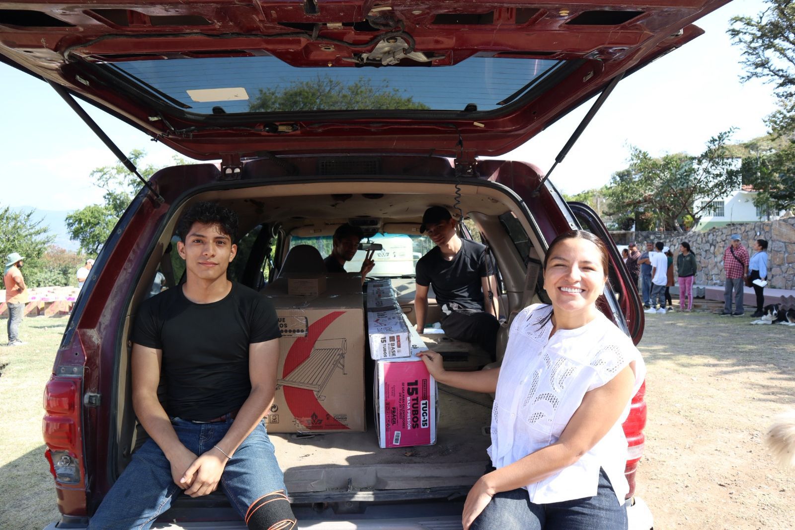Asimismo, la diputada llevó a cabo la entrega de 293 apoyos subsidiados al 50%, consistentes en 158 cubetas de pintura, 29 tinacos, 52 calentadores solares y 54 paquetes de láminas, destinados a familias de distintas comunidades de su distrito.