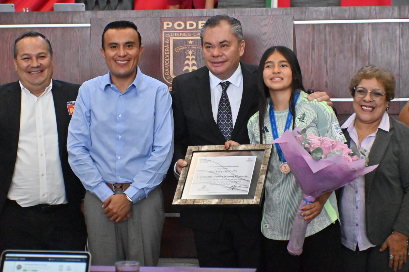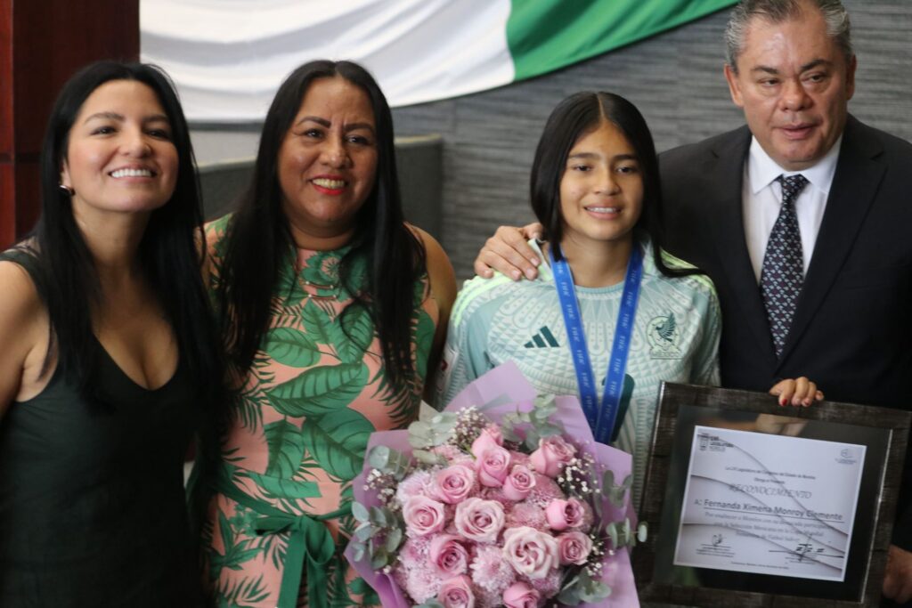 A nombre de los integrantes del Grupo Parlamentario de Morena en el Congreso del Estado de Morelos, el diputado Rafael Reyes reconoció la trayectoria deportiva de Fernanda Ximena Monroy Clemente, morelense integrante de la Selección Mexicana que obtuvo el tercer lugar en la Copa Mundial Femenina Sub-17 de futbol efectuada en Marruecos entre octubre y noviembre de 2025.