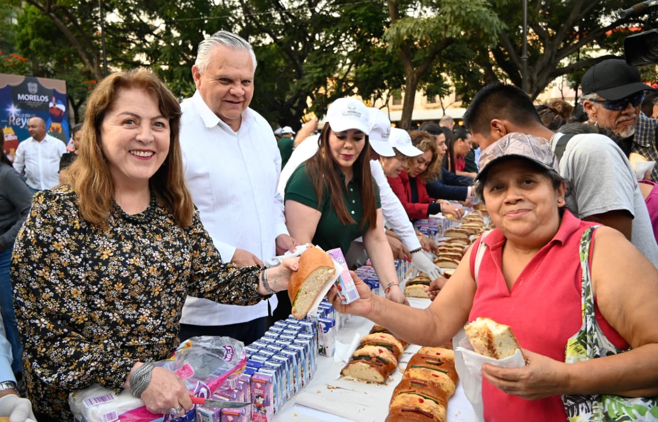 En el marco de la celebración del Día de Reyes Magos, la gobernadora Margarita González Saravia encabezó la conmemoración con el corte de la rosca en la Plaza General Emiliano Zapata Salazar, en el centro de Cuernavaca, donde cientos de familias se dieron cita para compartir esta significativa tradición.