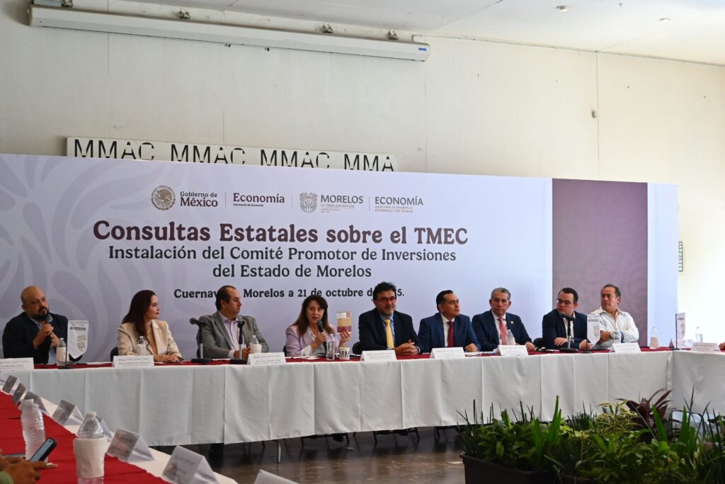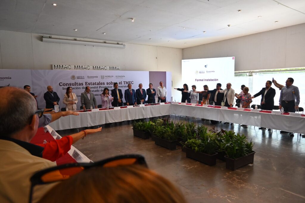 La gobernadora de Morelos, Margarita González Saravia, encabezó la toma de protesta e instalación del Comité Promotor de Inversiones del Estado de Morelos, en coordinación con la Secretaría de Economía del Gobierno de México, como parte de las Consultas Estatales sobre el Tratado entre México, Estados Unidos y Canadá (TMEC).