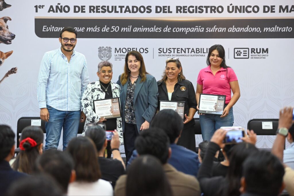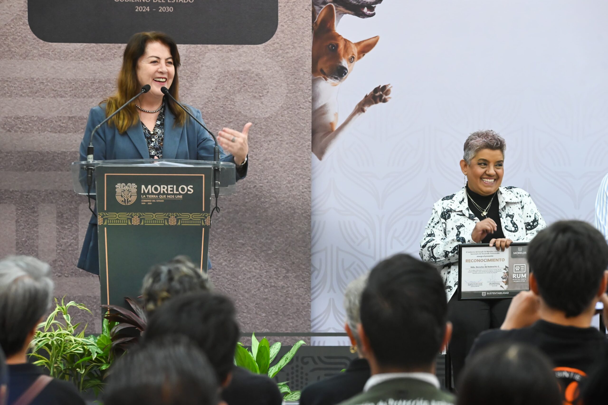 En este marco, entregó reconocimientos a las A.C. “Seres Sintientes Morelos”, “Amigos de los Perros de Morelos” y “Vida Derecho Animal”, representadas por Pompeya Ramírez Conejo, Violeta Rivera Domínguez y Rubí Reza Ayala, respectivamente.