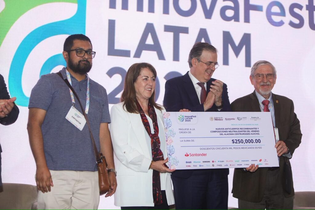 En la categoría de Patentes, el proyecto ganador fue “Formulación de anticuerpos recombinantes neutralizadores del veneno de alacrán huichol”, elaborado en la Universidad Nacional Autónoma de México (UNAM) Campus Morelos, por los investigadores Hugo Valencia Martínez, Timoteo Celso Clamandi Portugal, Lidia Riaño Limbarilla, Leorina Domingo y Baltasar Becerril Luján.