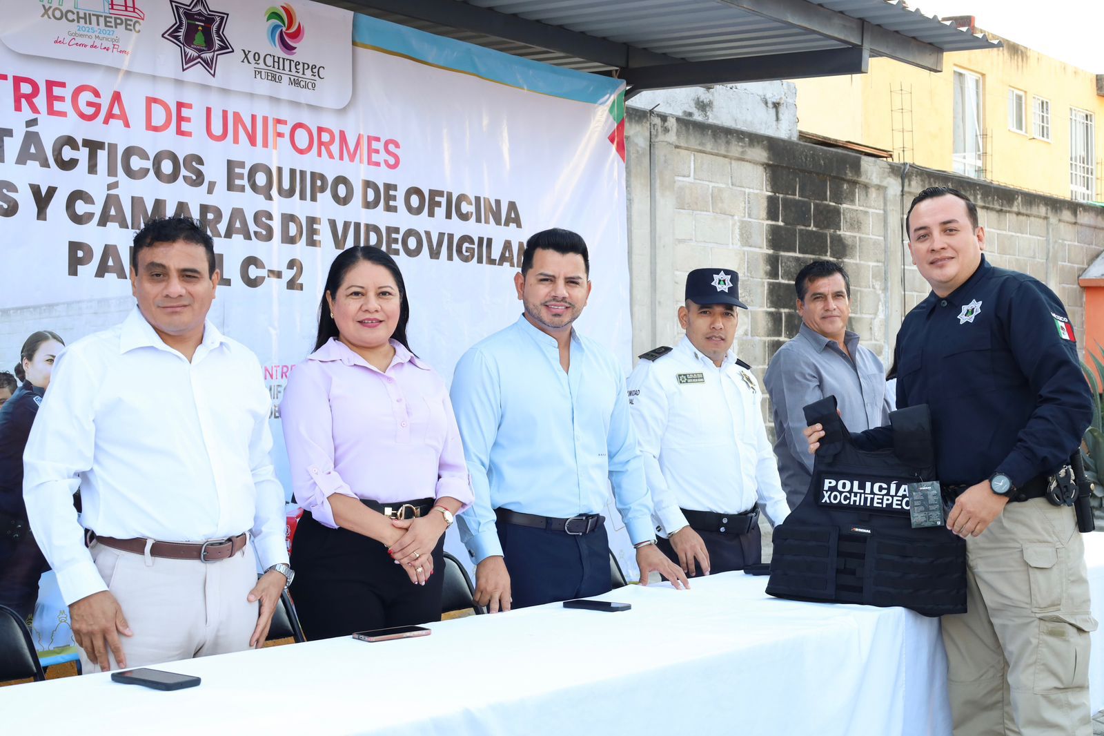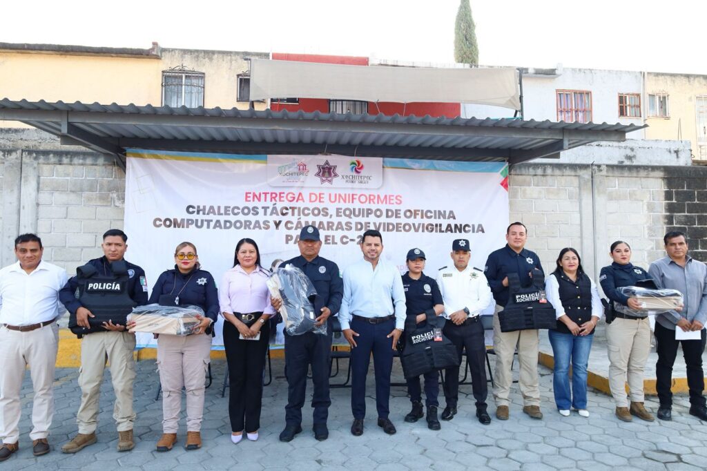 Con la convicción de que invertir en Seguridad Pública es una necesidad y un compromiso con el pueblo, así como con quienes están dispuestos a responder ante cualquier emergencia, el alcalde Roberto Gonzalo Flores Zúñiga “Chalo Flores” realizó la entrega de uniformes, chalecos tácticos, cámaras de videovigilancia y equipo de cómputo y oficina a la Policía de Xochitepec.