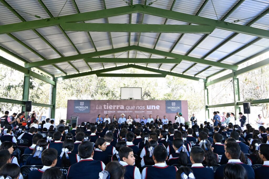 Posteriormente, la Gobernadora se trasladó a la Escuela Secundaria Mariano Matamoros, en Jantetelco, donde encabezó el corte de listón inaugural de una techumbre que permitirá a la comunidad escolar desarrollar actividades académicas, culturales y cívicas en mejores condiciones.