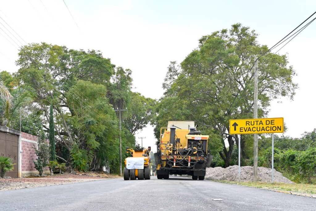 Las labores incluyen bacheo superficial y profundo, renivelación, colocación de sobrecarpetas de concreto asfáltico, limpieza de cunetas, desyerbe, señalamientos, trabajos indispensables para garantizar vialidades seguras y transitables ante cualquier eventualidad volcánica.