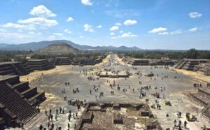 Durante la visita, las y los jóvenes recorrieron la zona arqueológica de Teotihuacán, incluyendo la Calzada de los Muertos y las Pirámides del Sol y de la Luna, lo que permitió consolidar sus conocimientos sobre patrimonio cultural y su aprovechamiento turístico.