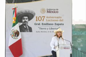 En la Ex Hacienda de Chinameca, municipio de Ayala, la gobernadora Margarita González Saravia y la presidenta de México, Claudia Sheinbaum Pardo, encabezaron la ceremonia por el CVII aniversario luctuoso de Emiliano Zapata Salazar, destacando su legado en acciones de justicia social para el campo.