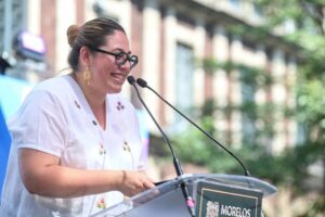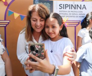 La gobernadora encabezó el 30 aniversario del Centro Cultural Infantil La Vecindad en la Plaza de Armas de Cuernavaca, donde niñas y niños participaron en talleres artísticos y recreativos.