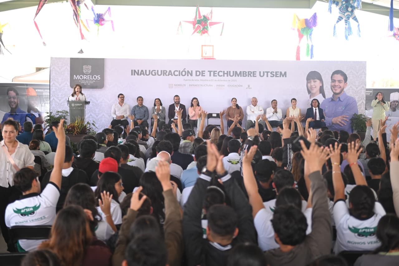 Con el objetivo de garantizar instalaciones seguras y dignas que favorezcan el desarrollo educativo y bienestar de las y los estudiantes, la gobernadora Margarita González Saravia entregó una techumbre en la Universidad Tecnológica del Sur del Estado de Morelos (UTSEM), ubicada en el municipio de Puente de Ixtla.