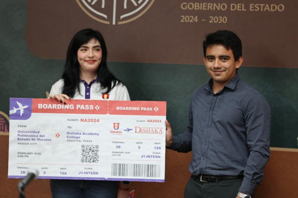 Con el objetivo de formar profesionistas de manera integral, así como generar oportunidades de empleo formal para las y los educandos, el Gobierno de “La tierra que nos une”, a través de la Secretaría de Educación y la Universidad Politécnica del Estado de Morelos (Upemor), en coordinación con Dishaka Academy College, realizó la entrega de la estafeta a la segunda generación que viajará en febrero a Estados Unidos como parte del Programa de Movilidad Internacional y Nacional de Estudiantes e Investigadores de la universidad.