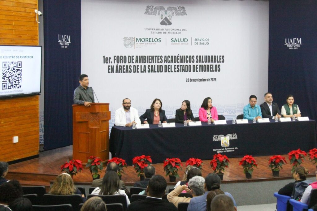 La Secretaría de Salud, a través de Servicios de Salud de Morelos (SSM), destacó que un ambiente académico saludable es aquel que prioriza el bienestar físico y mental de estudiantes y docentes, promoviendo el respeto mutuo, la comunicación abierta y la prevención del agotamiento profesional. Bajo esta visión, se llevó a cabo el primer Foro de Ambientes Académicos Saludables en Áreas de la Salud del Estado de Morelos, teniendo como sede la Universidad Autónoma del Estado de Morelos (UAEM).