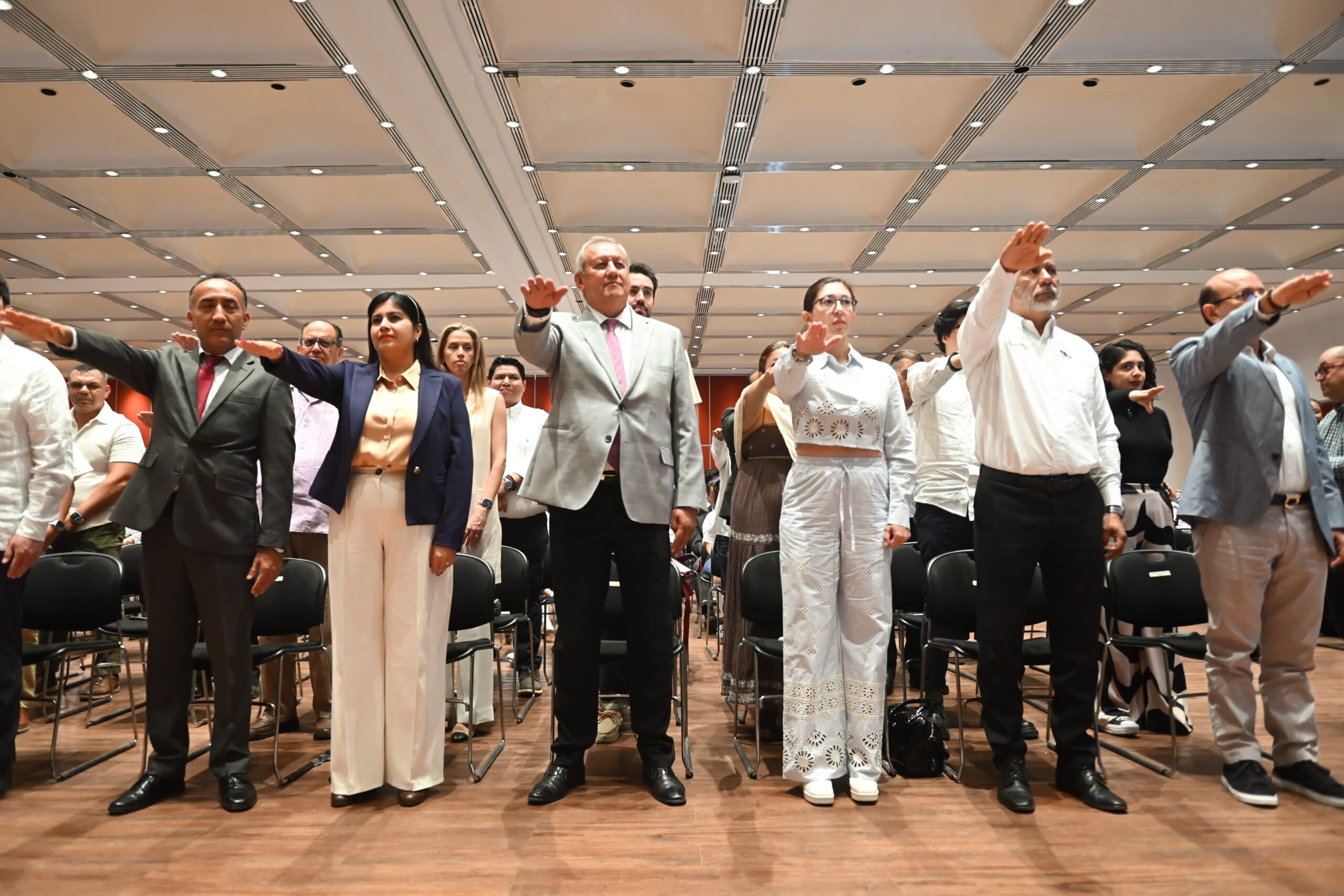 Durante el acto protocolario, la secretaria de Bienestar tomó protesta a las y los integrantes de la Comisión, así como a niñas y niños de educación primaria que conforman los Comités por la Paz.