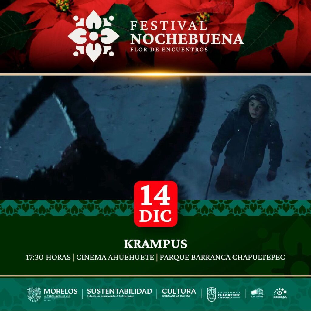 El domingo 14 de diciembre continuará el Mercadito Navideño en el horario ya mencionado, y a partir de las 12:00 horas se realizará un taller infantil de pintura en cerámica en la Estación del Tren, donde las niñas y los niños podrán participar de manera gratuita, con materiales proporcionados por el parque. Ese mismo día, a las 17:30 horas, se proyectará la película “Krampus” en el Cinema Ahuehuete, complementando la jornada con un ambiente familiar y natural.