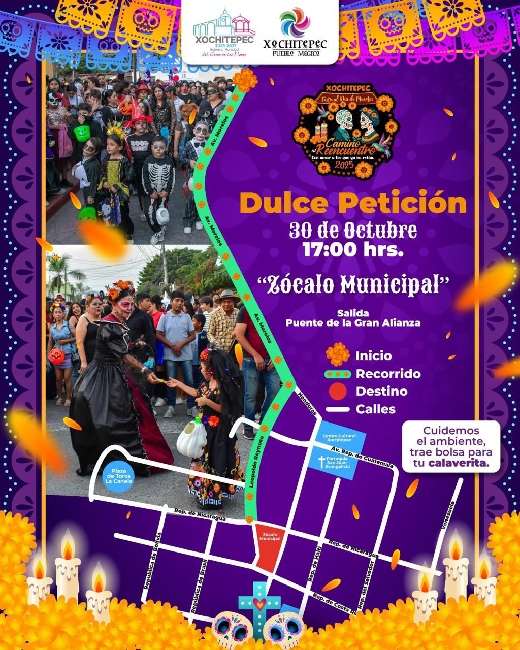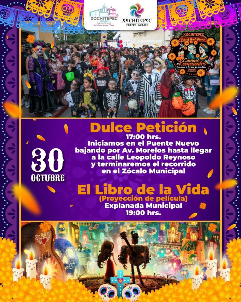 Esta será la segunda edición de “Dulce Petición”, una actividad incluyente y familiar que busca fortalecer las tradiciones del Día de Muertos y transmitirlas a las nuevas generaciones. El Ayuntamiento destacó que la invitación está abierta también a niñas y niños de otros municipios para que vivan la magia y el espíritu del Pueblo Mágico de Xochitepec.