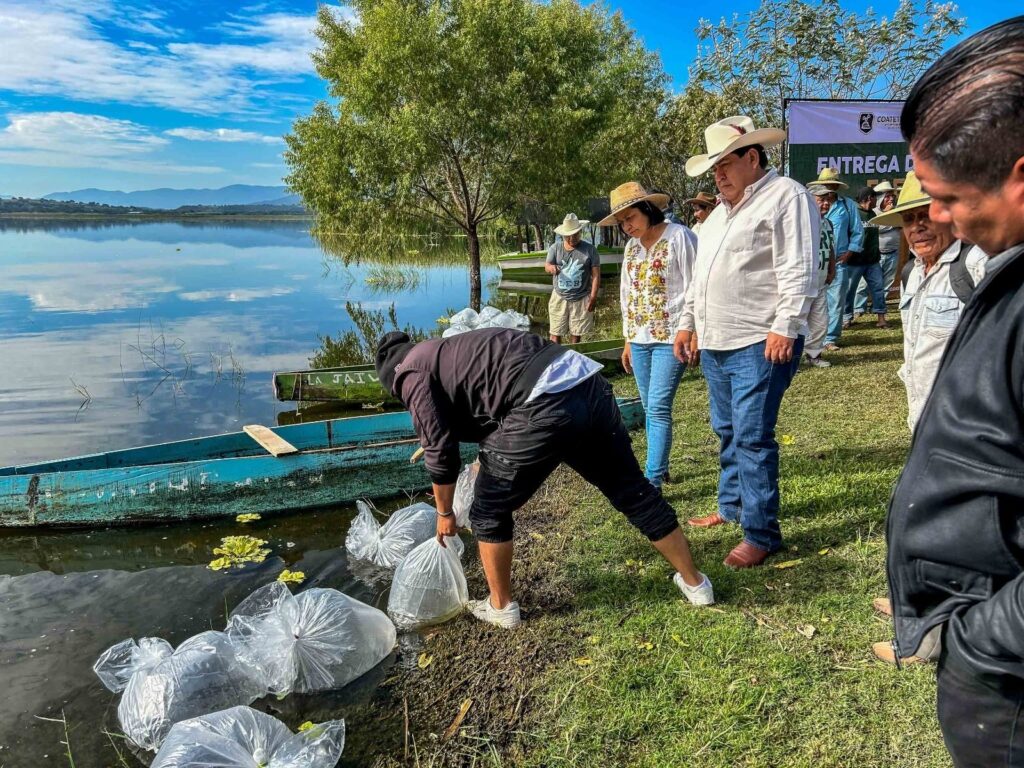 Con el firme propósito de fortalecer la actividad acuícola en la región sur del Estado, la titular de la Secretaría de Desarrollo Agropecuario (Sedagro), Margarita Galeana Torres, acompañó la siembra de más de 300 mil alevines en la Laguna de Coatetelco, acción impulsada por el presidente municipal de esa localidad indígena, Luis Eusebio Onofre Jiménez, con recursos del Fondo de Aportaciones Estatales para el Fomento Municipal (FAEFOM).