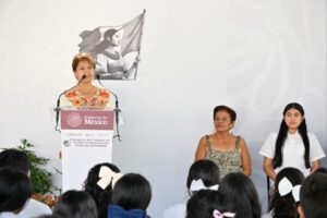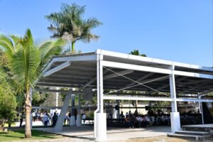 En Coatlán del Río, la mandataria inauguró la techumbre de la cancha de usos múltiples de la Escuela Secundaria Tlacaelel, infraestructura que permitirá a la comunidad escolar realizar actividades cívicas, deportivas, culturales y recreativas en mejores condiciones.