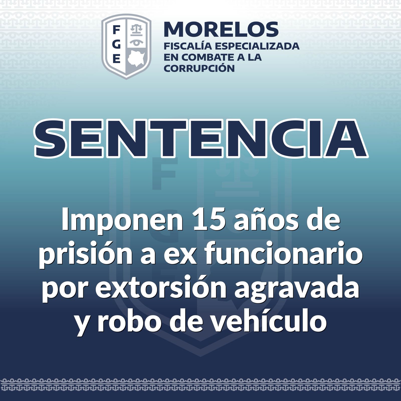 La Fiscalía Especializada en Combate a la Corrupción (FECC) obtuvo una sentencia condenatoria de 15 años de prisión en contra de Luis Enrique “N”, supuesto funcionario público, luego de que aceptara su culpabilidad en los delitos de extorsión agravada y robo de vehículo y solicitara un procedimiento abreviado.