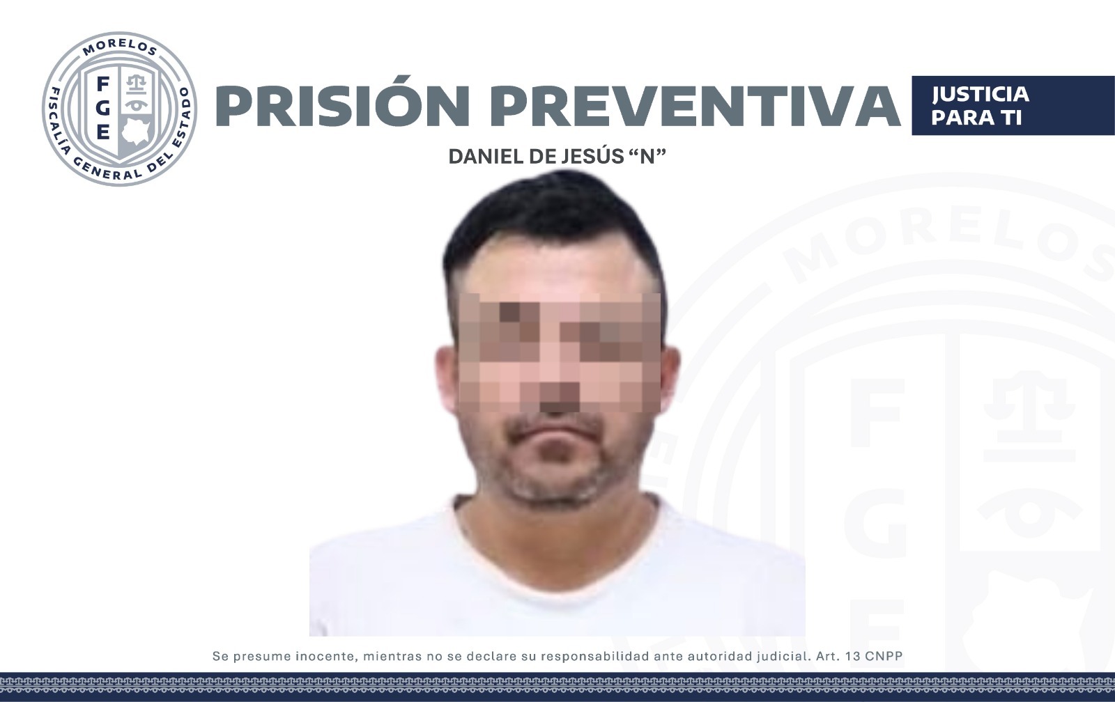 La Fiscalía Regional Metropolitana, a través de un agente del Ministerio Público llevó ante un juez de control a Daniel de Jesús “N”, quien fue asegurado por elementos de la Agencia de Investigación Criminal (AIC) en el municipio de Temixco, en atención a una orden de aprehensión.