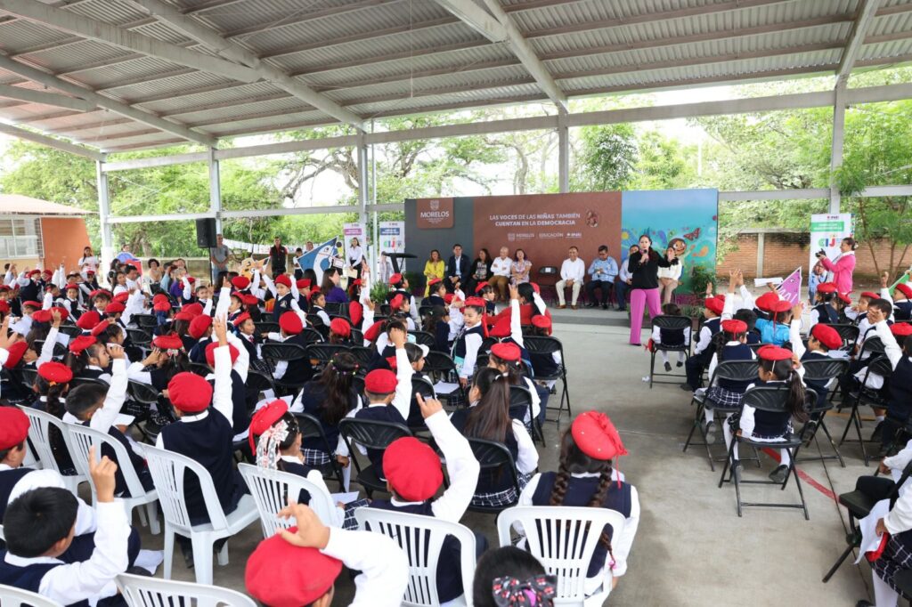 En el marco del Día Internacional de las Niñas, el Gobierno de “La tierra que nos une”, encabezado por Margarita González Saravia, a través de la Secretaría de Educación y en coordinación con el Instituto Nacional Electoral (INE), llevaron a cabo la jornada “Las voces de las Niñas también cuentan en la Democracia”, en la Escuela Primaria Federal Bilingüe “Tlaltekokomitl” del municipio indígena de Xoxocotla.