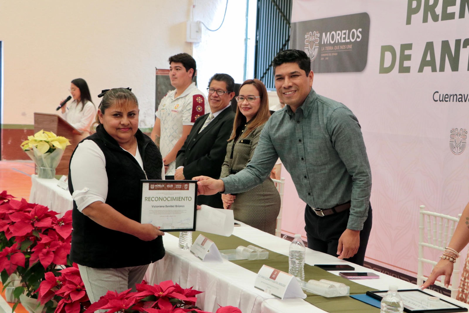 La ceremonia tuvo lugar en el gimnasio “La Rana”, de la unidad deportiva Centenario, en Cuernavaca, donde las y los galardonados, acompañados de sus familias y seres queridos, celebraron este momento que honra toda una vida de compromiso con Morelos.