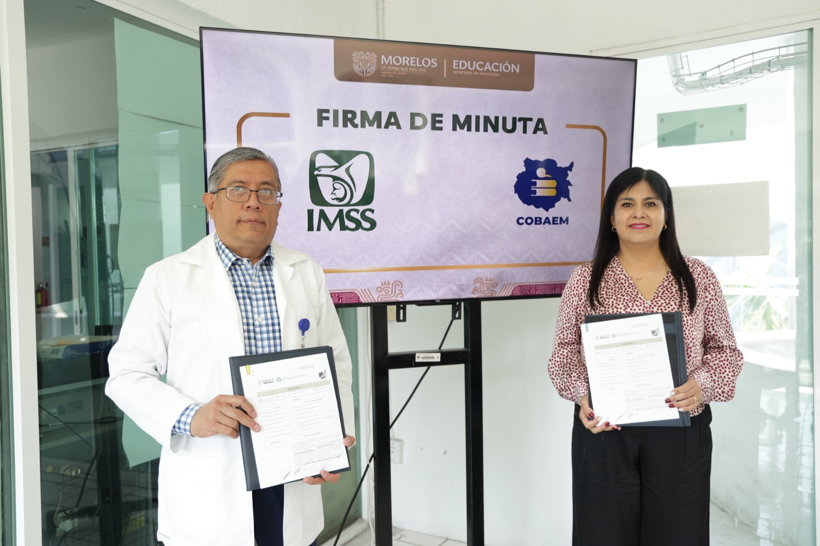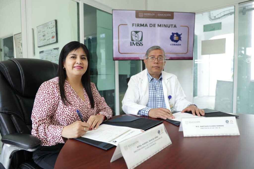 El Colegio de Bachilleres del Estado de Morelos (Cobaem) refrendó la colaboración con la Unidad de Medicina Familiar número 20 del IMSS, mediante la firma de una minuta de trabajo que da continuidad a las acciones de salud preventiva en beneficio de la comunidad educativa.