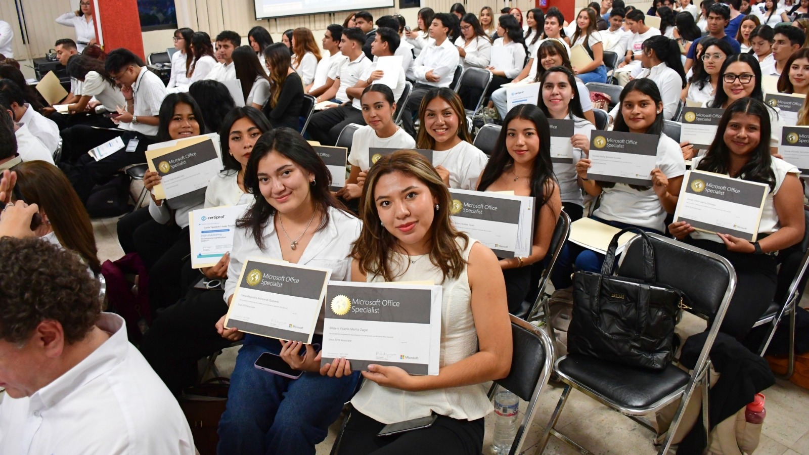Como parte del fortalecimiento académico, también se realizó la entrega de certificaciones a estudiantes de séptimo y décimo cuatrimestre de Innovación de Negocios y Mercadotecnia, Gestión del Capital Humano y Contaduría. En total, 165 alumnas y alumnos y tres docentes concluyeron de manera satisfactoria procesos de evaluación con validez nacional e internacional.