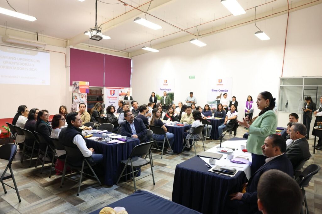En el marco del lanzamiento de la Convocatoria 2026 de la Universidad Politécnica del Estado de Morelos (Upemor), la secretaria de Educación, Karla Aline Herrera Alonso, presidió el encuentro entre orientadoras y orientadores académicos 2025 de instituciones de nivel medio superior de la entidad morelense.