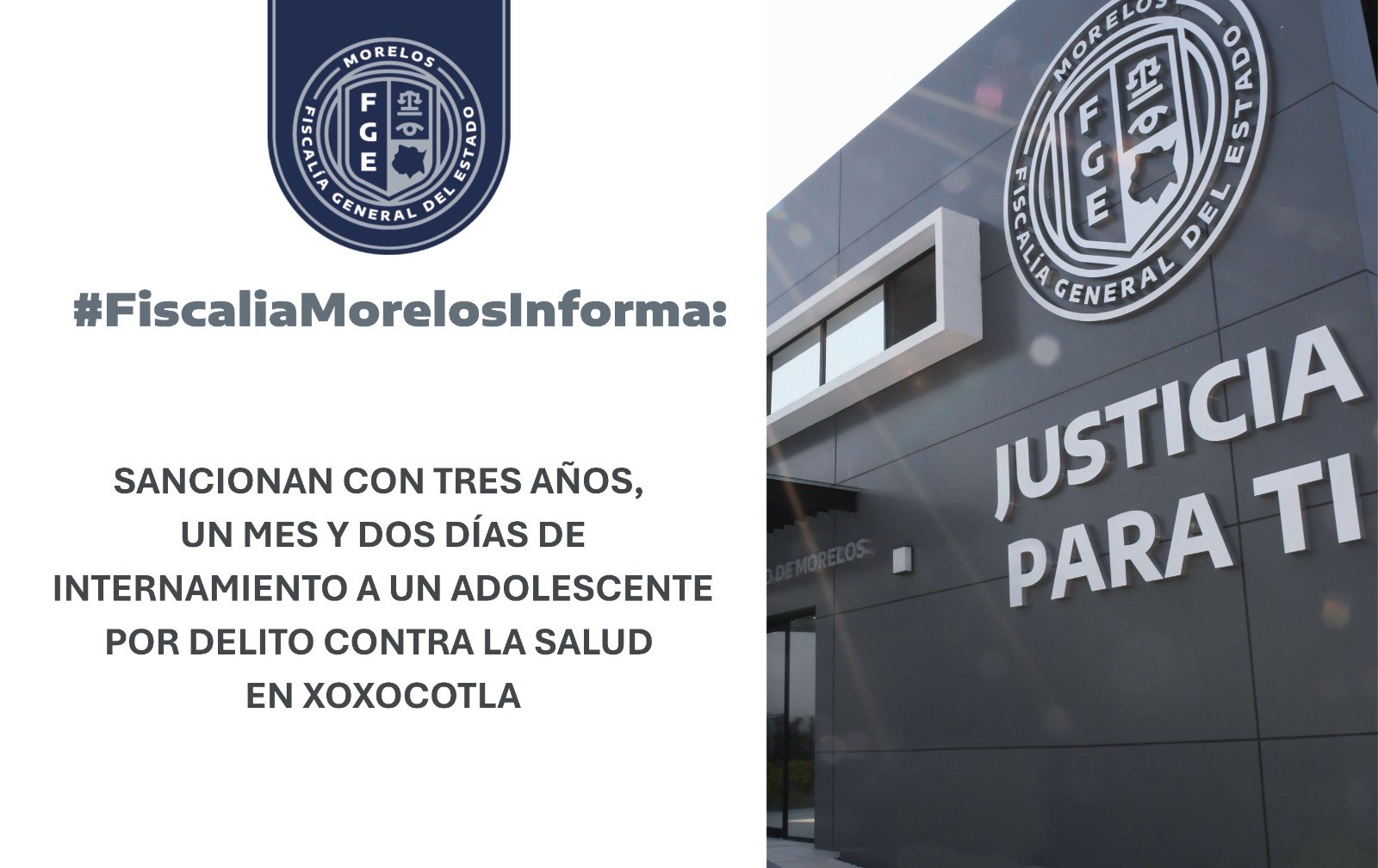 La Fiscalía Regional Sur Poniente obtuvo una sanción socioeducativa de tres años, un mes y dos días de internamiento preventivo para un adolescente en conflicto con la ley, asegurado en el municipio de Xoxocotla por la conducta antisocial de delito contra la salud con fines de comercio.