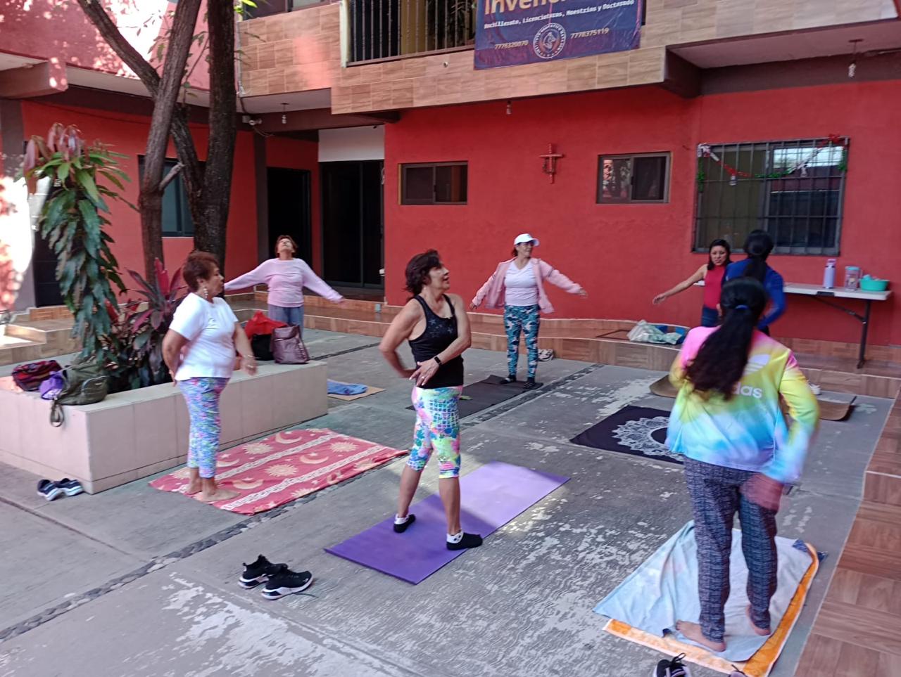 De esta manera, durante el taller se realizaron ejercicios de estiramiento con apertura de cadera, utilizando tapetes de yoga y mantas para favorecer la flexibilidad corporal, al finalizar, las asistentes compartieron cómo este tipo de dinámicas fortalecen su bienestar emocional y físico.